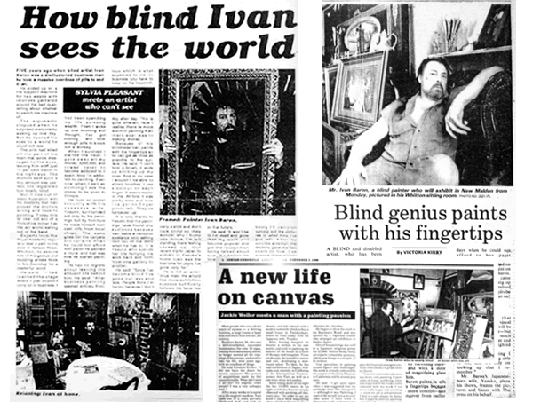 Ivan Baron was born in Yorkshire in 1939 and achieved great success as a hairdresser to the stars in the 60s and 70s, owning his own chain of shops. Although married with one son, the success became empty and turned to boredom, leading to an attempted suicide in 1981. Although the attempt failed, after many days in a coma, it took 80% of his vision and he was given a two-year life expectancy. Ever the fighter and not one to be beaten, unable now to cut hair, the obvious course for Ivan was to become an artist, refusing to allow his 20%, blurred vision to thwart his success.